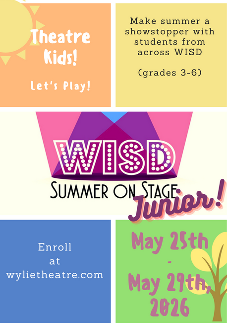 WISD Summer on StageLast week of MayEnrollment opens here March 1, 2026Don’t miss out—spots fill fast!